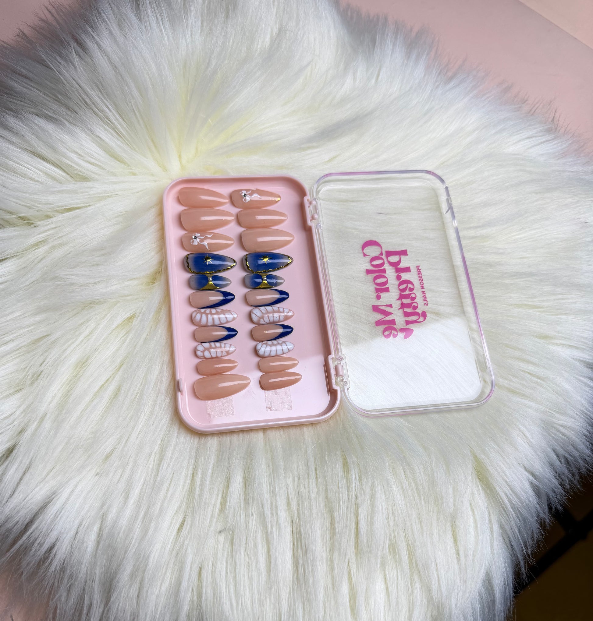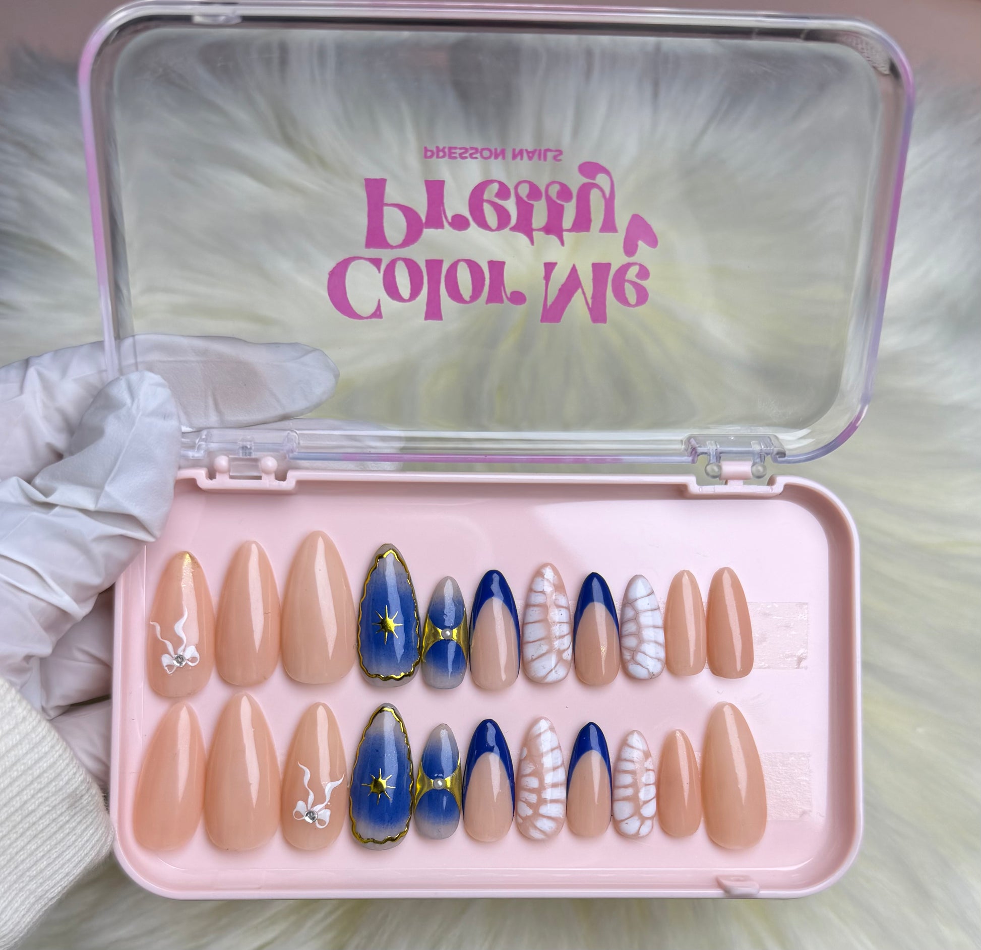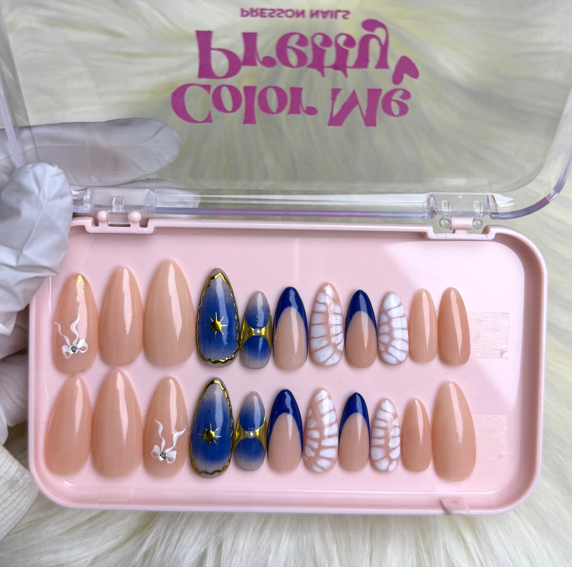 Inspired by timeless elegance, this set features deep azure tones accented with fine detailing. The design reflects heritage charm with modern nail techniques, creating a rich, heirloom-worthy look. Perfect for those who appreciate depth, artistry, and sophisticated color stories.