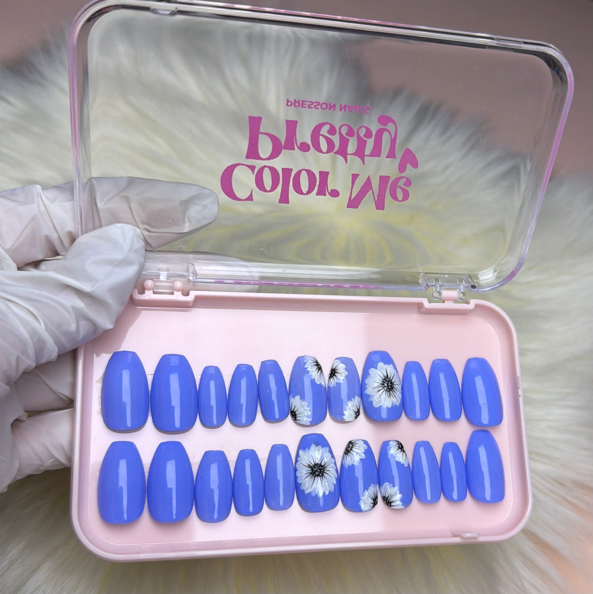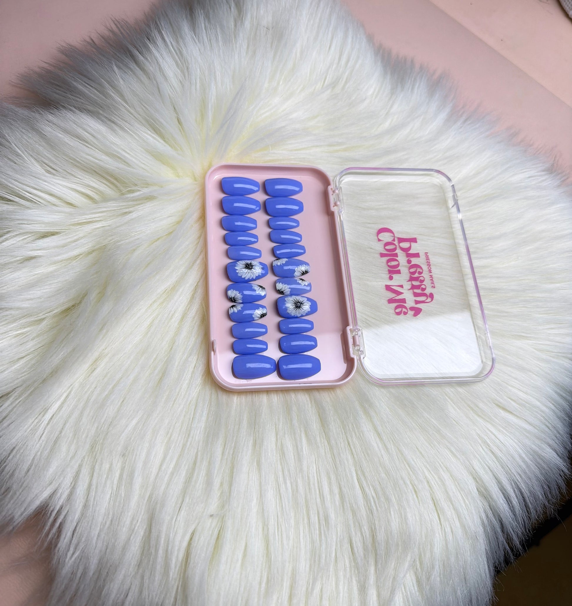 Blossom blue nails capture the calm elegance of soft blue tones paired with delicate hand-painted floral details. This set reflects refined artistry, showcasing precise brushwork and a smooth, glossy finish that enhances the overall charm. Perfect for everyday elegance or special occasions, these nails offer a fresh yet graceful look.