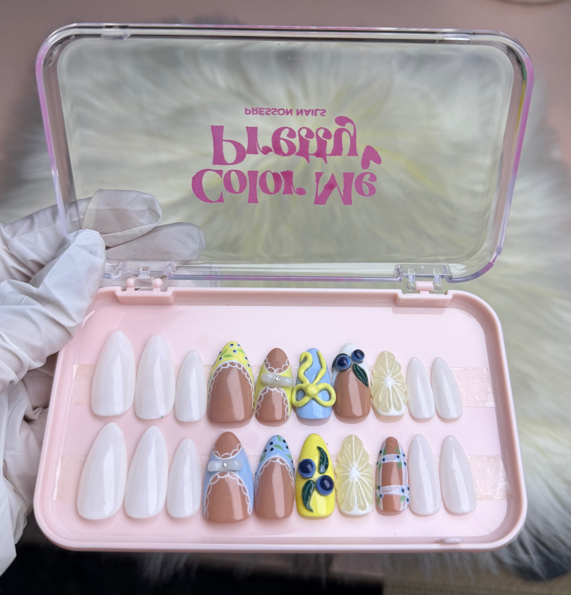 Lemon Breeze Nail is a fresh, hand-crafted set inspired by sunlit citrus gardens and soft summer mornings. Featuring playful lemon motifs, delicate lace detailing, and a soothing mix of pastel tones, this design showcases fine artistry and precision. The balanced composition brings a cheerful yet elegant charm, making it perfect for seasonal styling and standout everyday wear.