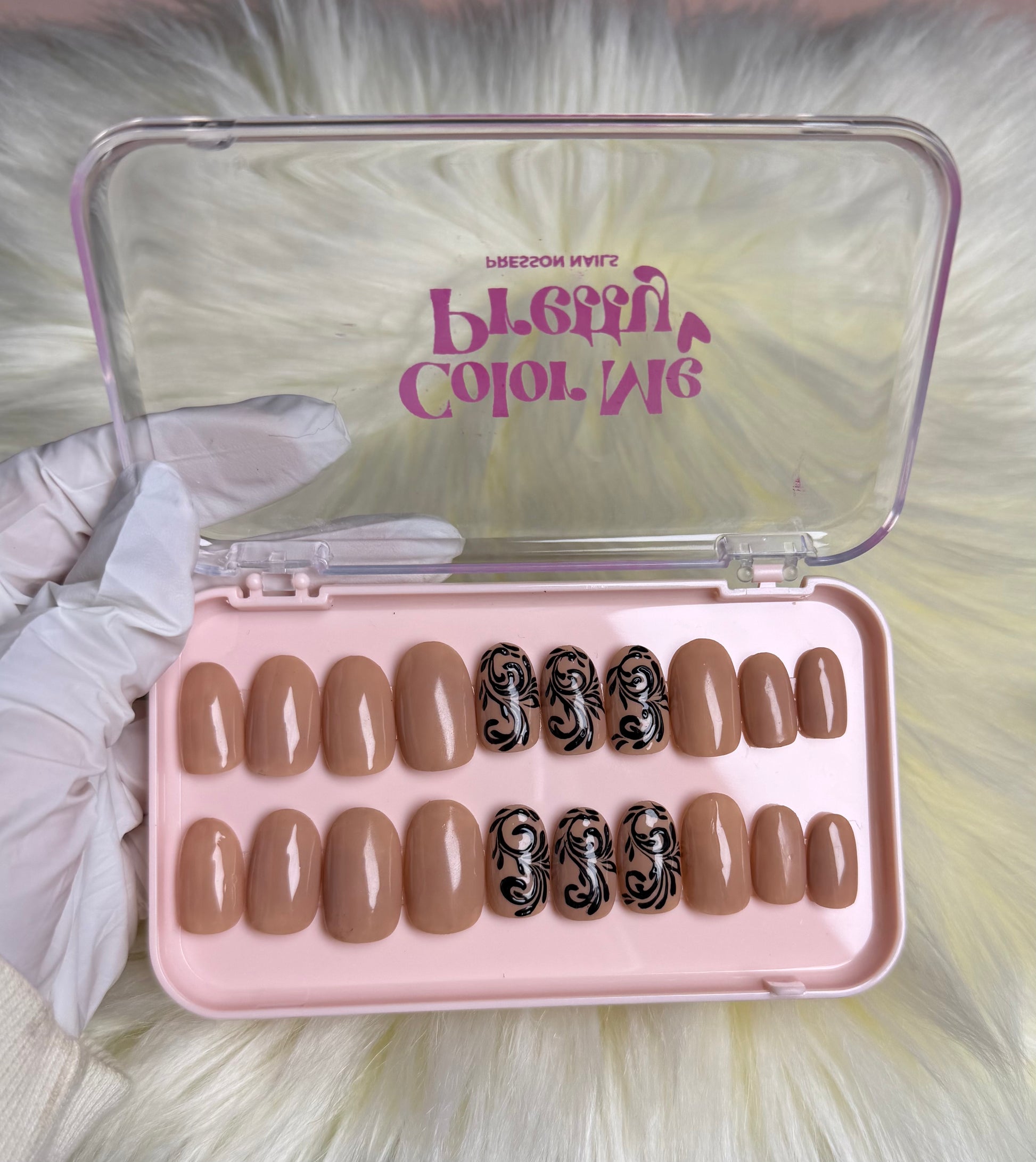 Warm mocha tones paired with artistic swirl detailing make this set both cozy and stylish. Each swirl is hand-painted for fluid movement and balance. The design blends earthy elegance with creative flair, making it ideal for trendsetters who love soft neutrals with a twist.