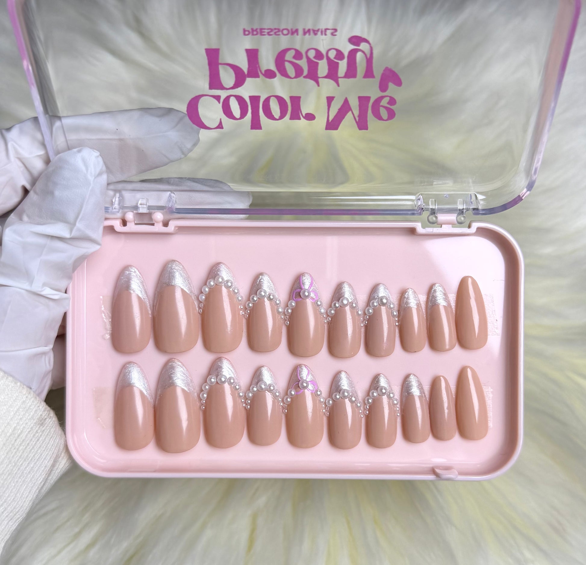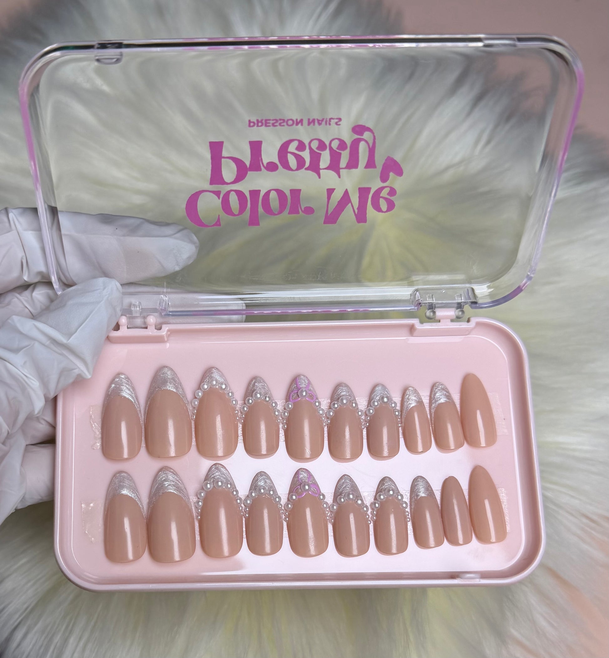 A sophisticated French manicure elevated with pearlescent finishes, thisarei exudes regal elegance. The soft pearl sheen reflects light beautifully, creating a luxurious glow. Precision shaping and flawless polish application ensure a refined look. Ideal for weddings, formal occasions, or anyone seeking classic nails with a royal touch.
